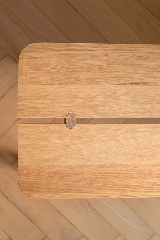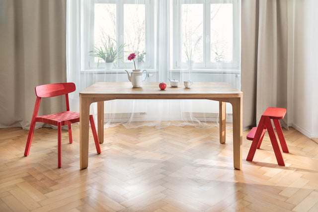 Lavice z masivu výrazná svou bytelností i lehkostí. Můžete si na ní lehnout, sednout, nebo můžete skákat z jedné na druhou, protože zem je láva.